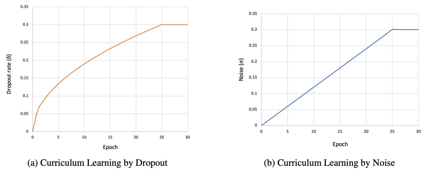 curriculum learning by noise, curriculum learning by dropout, and Mish activation function.
